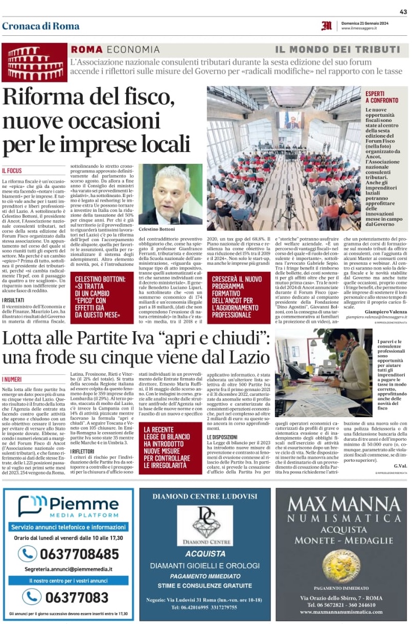 pdf Il Messaggero Economia - I tributaristi: pagamenti Pa e rimborsi Iva più veloci - 20/11/2024